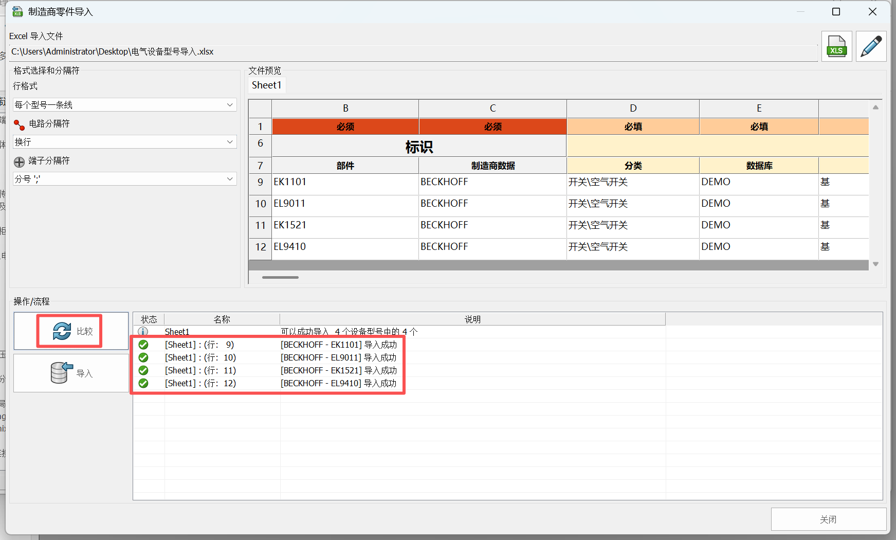 SOLIDWORKS Electrical如何通过表格批量导入电气设备型号