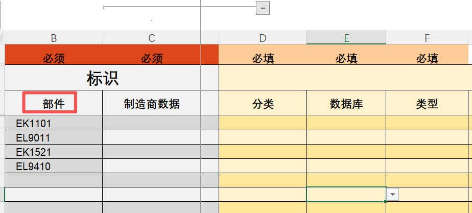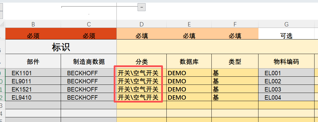 一、部件列,一般写入电气设备型号或同等类型的属性。